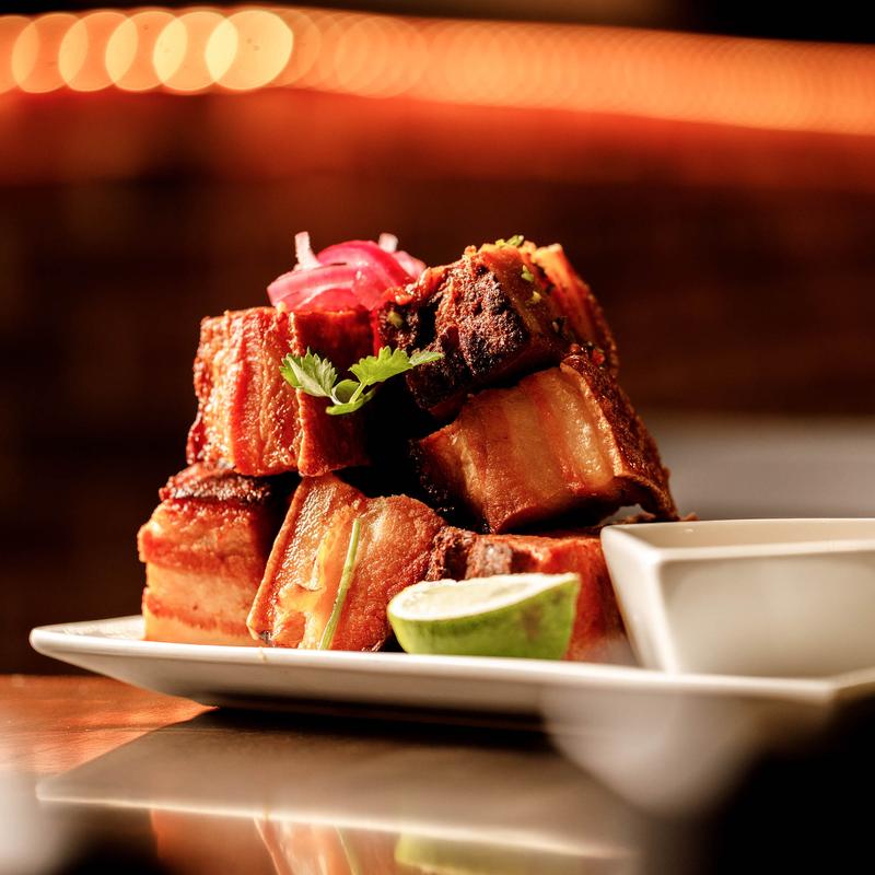 Crispy pork belly chop smoked, served with fresh guacamole and pico de gallo.